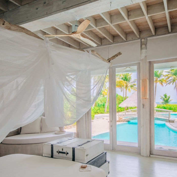Spanning 19,246 sq.ft., this beachfront villa accommodates up to 8 adults and 2 children, offering four bedrooms, a private gym, and a fully equipped kitchen. With a steam bath, sauna, wine cellar, and sunken dining area, it’s the ultimate retreat for luxury and relaxation.