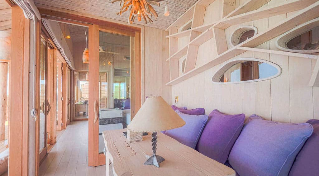 This spacious 5,974 sq.ft. over-water villa offers the perfect blend of luxury and tranquility, ideal for couples or small families. The master bedroom features a retractable roof, allowing guests to fall asleep under a blanket of stars at the touch of a button. The ensuite bathroom includes both indoor and outdoor showers, a signature sunken bath, and direct access to the lagoon. With sunrise or sunset-facing views, the expansive outdoor deck includes a private freshwater pool, a sunken dining area, daybeds, a swing, and catamaran nets for ultimate relaxation. This villa also features a thrilling water slide, a cozy living room, a dedicated children’s sleeping area, and a TV lounge, ensuring every need is met in this over-water sanctuary.